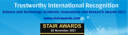 STAIR Progressive Forum, India is happy to announce the first edition of Science and Technology Academic, Innovation and Research Awards (STAIR Awards) 2021. The objective of STAIR Awards is to recognize the outstanding academic heroes who are continuously engaged to build the future of the sustainable world through imparting knowledge and excellence to the future generations. STAIR Award Event is scheduled on 25 November 2021 in virtual mode.